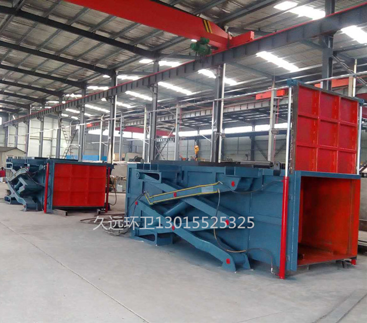 1.主要特點(diǎn) ◇平穩可靠:兩側舉升,剪叉跨度大,升降平穩,無(wú)傾斜; ◇淺地坑:地坑深度僅為1.55m,保潔及維修極為方便; ◇高效率:壓實(shí)每噸垃圾時(shí)間≤10min; ◇全封閉水平壓縮:采用水平壓縮方式,垃圾壓縮密度≥0.86t/m3,垃圾壓縮后體積大大減小,從而大幅度提高轉運車(chē)輛裝載量和轉運效率,降低垃圾處理、轉運等費用; ◇動(dòng)作少,故障率低,整套設備的垃圾壓縮、裝車(chē)由三個(gè)動(dòng)作完成,簡(jiǎn)單實(shí)用,各動(dòng)作之間安全互鎖,防止操作人員誤操作造成安全事故,安全可靠; ◇垃圾儲存、壓縮及寄存全部在地面以下,地面上沒(méi)有垃圾散落,對環(huán)境影響較小,環(huán)保性好;垃圾壓縮后密度高,水份少,可避免汽車(chē)運輸中的垃圾散落、污水滴漏現象,避免二次污染; ◇土建費用低,占地面積小,可以不蓋大型工作間,既節約了投資,也縮短了工期; ◇留有專(zhuān)門(mén)的維修窗口,維修保養方便; ◇設有固定式操作和遙控器兩種操作模式,方便實(shí)用; ◇自動(dòng)化程度高,可大幅提高工作效率,降低勞動(dòng)強度。![]()