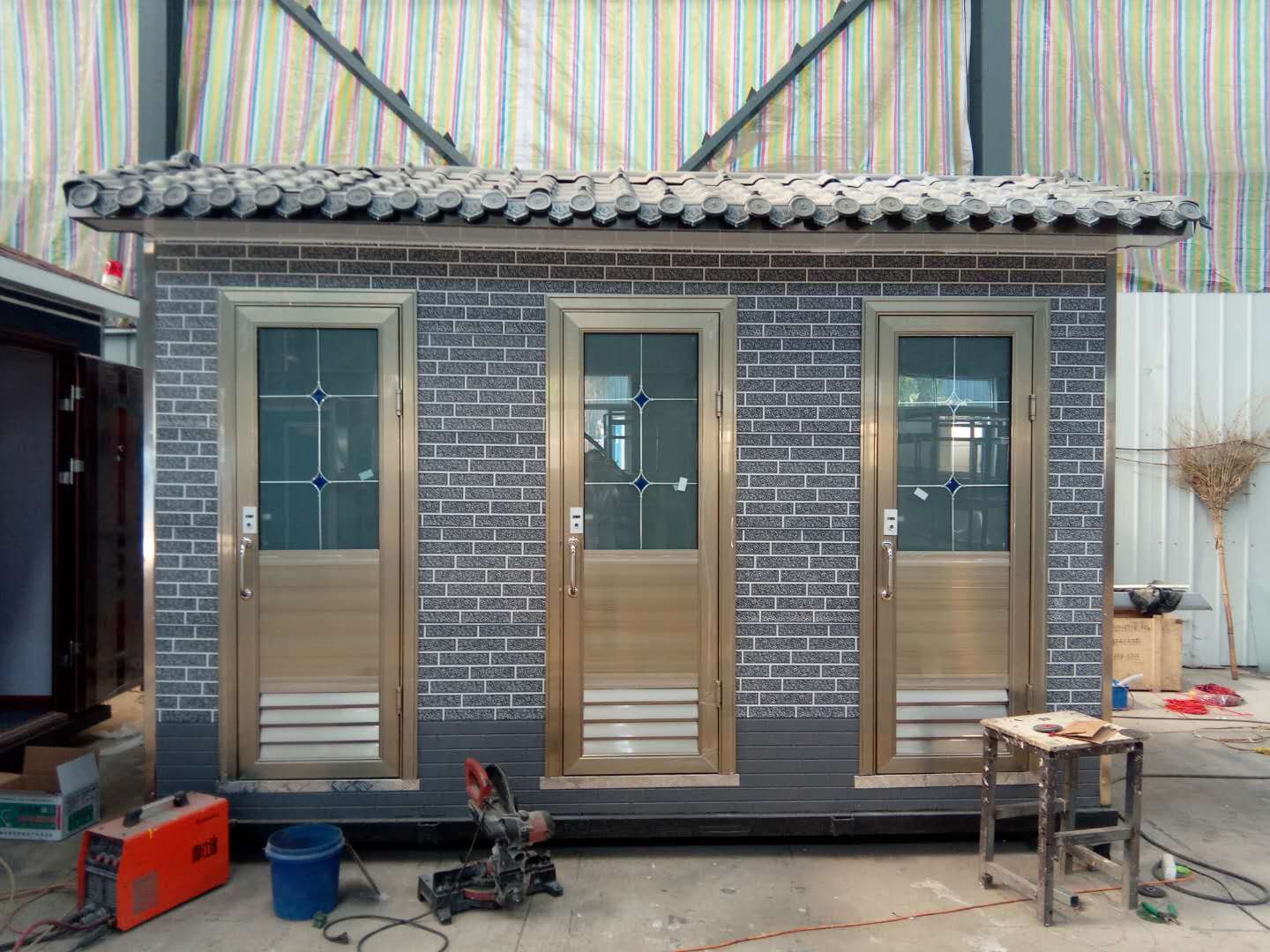 1、房體結構: 采用輕鋼龍骨結構,鋼材全部使用國家標準鍍鋅鋼材。根據房體的大小特選用國標方管(50-100)焊接而成。鍍鋅管厚度為2.8mm,方管經(jīng)過(guò)除銹后進(jìn)行鍍鋅、防腐處理。這樣就會(huì )延長(cháng)廁所使用壽命。