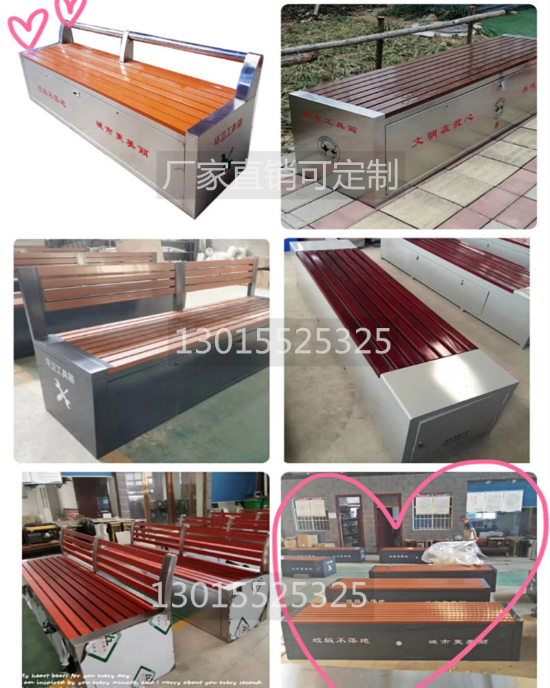 環(huán)衛工具箱:也叫保潔員工具箱,環(huán)衛工具椅,保潔員休息座椅,市政保潔箱等。工具箱常用尺寸為:長(cháng)2400*寬500*高550mm,也可以做成2米,2.4米,2.7米等,寬度和高度也可以定做,滿(mǎn)足不同客戶(hù)、不同場(chǎng)所的使用要求。