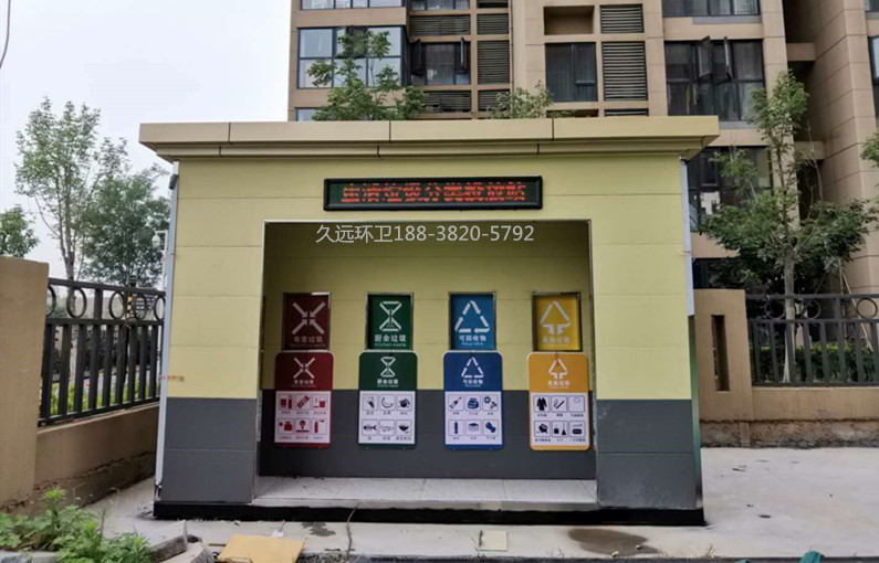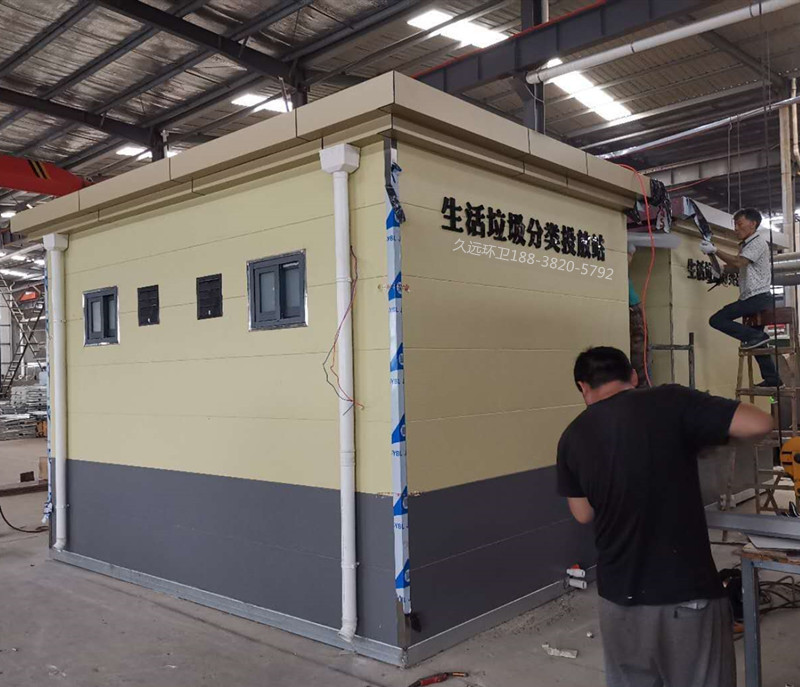 生活垃圾分類(lèi)投放站廠(chǎng)家定制——久遠環(huán)衛是一家集研發(fā)生產(chǎn)、銷(xiāo)售服務(wù)為一體的大型環(huán)衛設備生產(chǎn)企業(yè),公司注冊資金5000萬(wàn)元,占地面積50余畝,擁有現代化生產(chǎn)車(chē)間1萬(wàn)余平方米,辦公面積1000余平方米,在職員工200多人,具有雄厚的技術(shù)及生產(chǎn)實(shí)力。 公司主要生產(chǎn)垃圾壓縮中轉站、垃圾分類(lèi)收集房、環(huán)保移動(dòng)公廁、各類(lèi)垃圾桶果皮箱、環(huán)衛工具箱、環(huán)衛道班房、崗亭、休閑座椅、等公共環(huán)衛設施。